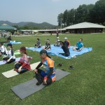 大会会場の横では、ヨガ教室をやっているので、準備運動はいつもヨガをやります。
