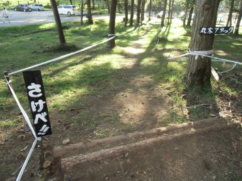 子どもも走る松のコースに設置した丸太。 その名も『丸太アタック』
