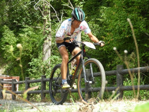 スタート直後のジープロードでEバイクの選手と、エリートの別格の選手に抜かれまくるが、